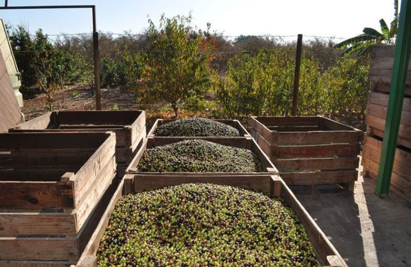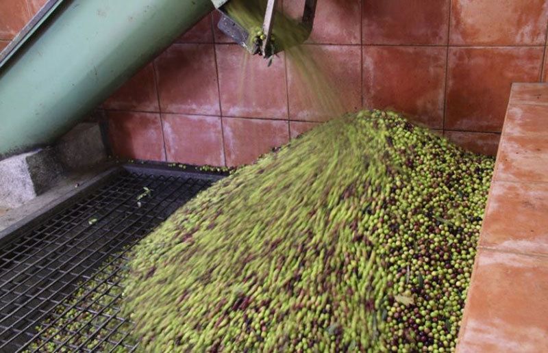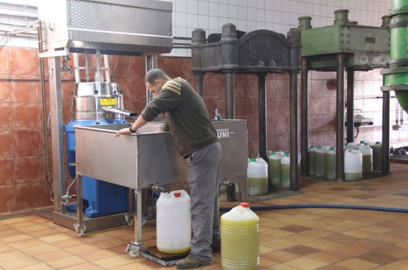 Primero, cuando llega una partida de olivas, se limpian de hojas y otras impurezas, se ponen en cubos de madera y se pesan. Ya pueden entrar al molino. Toda la maquinaria es de acero inoxidable, de manera que permite mantener una limpieza y sanidad impecables.