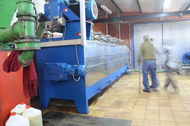 Seguidamente, pasa por una decantación horizontal para separar el aceite virgen de la piel, el hueso y el agua que llevan las aceitunas. Después de una decantación en reposo, ya tenemos el aceite preparado para su venta.