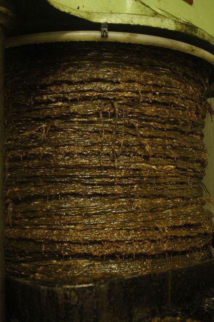 Esta extracción en frío se lleva a cabo en el Mas Montseny, situado en el pueblo del Morell (Tarragona) desde el año 1940. Las fotos de la maquinaria y la elaboración son gentileza del mismo.